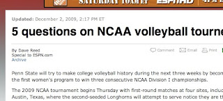 Sideline, everybody! - What's the deal with that new protocol? Are they afraid the "average viewer" is going to be lost if we come back from commercial and the players are on the court already? I swear the ghost of Emily Post haunts the sport of volleyball. Do they want the players on the bench to cross their legs at the ankle, too?